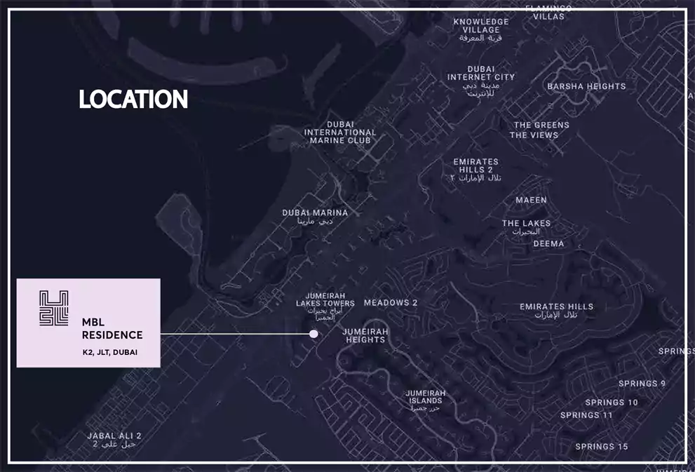MBL Residence by master developer MAG PD is located in Jumeirah Lake Towers (JLT), Dubai. As part of Dubai's waterfront community, this project occupies a prime location in an increasingly important area. For those who want to combine business with pleasure, this project looks like a good option. Thanks to its excellent transport accessibility, getting around the city will never be a problem.