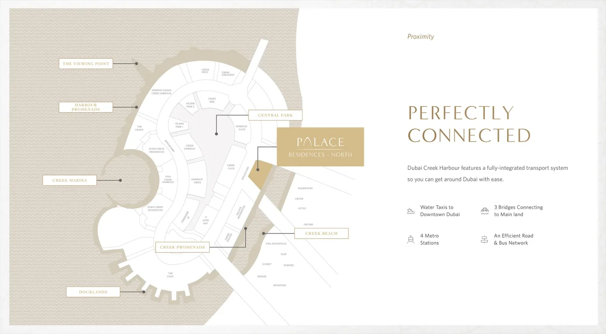 Palace Residences North, located in Dubai's coveted Dubai Creek Harbor in Dubai, offers residents plenty of amenities and easy access to the most famous destinations. Hundreds of amenities, services and facilities allow you to enjoy life with your loved ones.