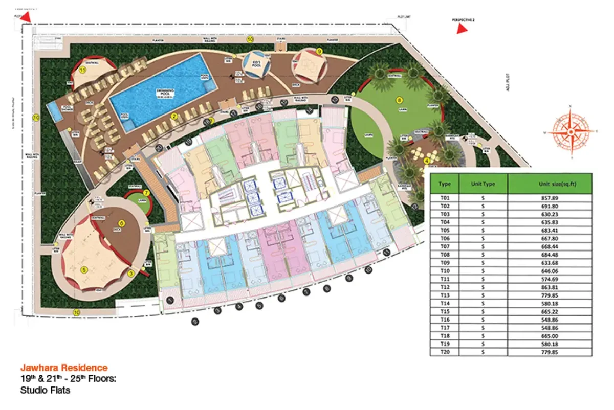 Located in the heart of the city, Al Jawhara residential complex is one of the most important locations in Dubai. It is surrounded by the main institutions and buildings of the city. This location also has unparalleled access to transportation facilities. Jumeirah Village Triangle is close to iconic locations such as Palm Jumeirah, Dubai Marina, Dubai Sports City, Motor City and other attractions. The metro station is within walking distance and the international airport is just a short drive from Jawhara.