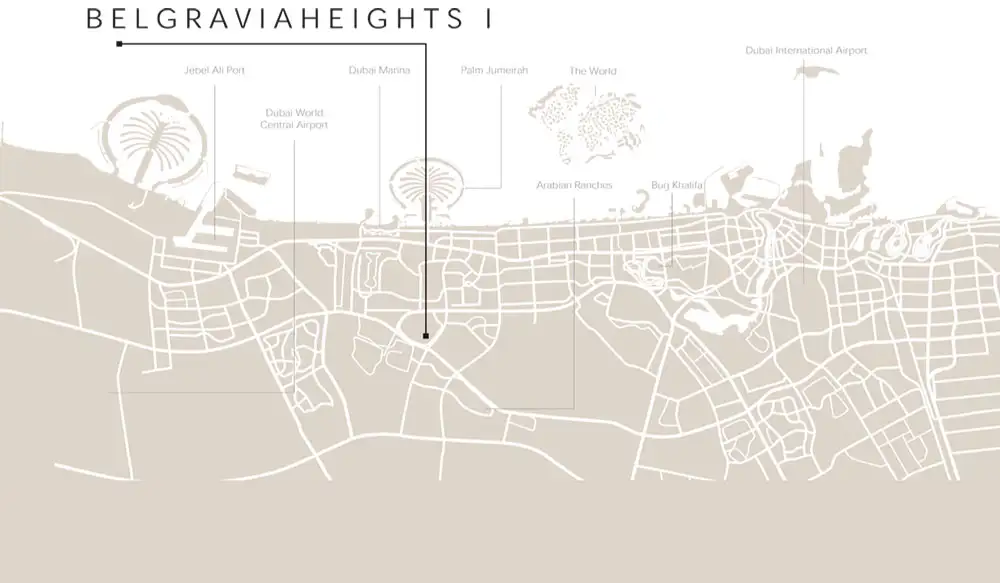 Located in the fast-growing Jumeirah Village Circle, Belgravia offers unparalleled access to the city. Easy access to all major thoroughfares. Central location to Dubai International Airport and Dubai World Central. Short commute times to major entertainment, shopping and business facilities in Dubai.