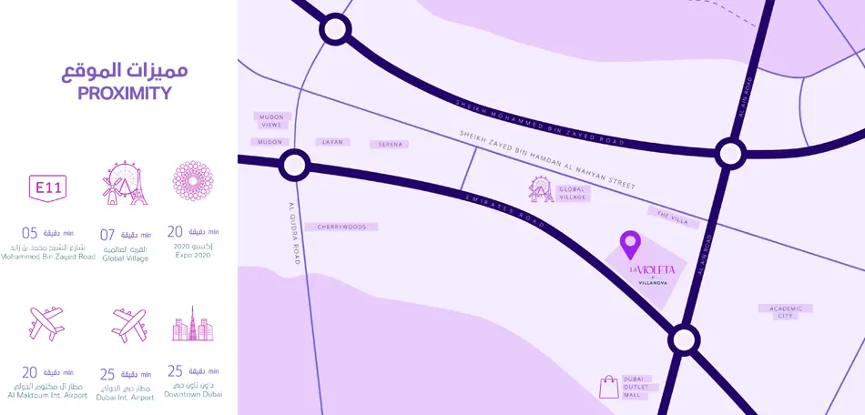 La Violeta is an exclusive address in the Villanova community of Dubailand. The complex is ideally located in the center, providing easy access to major highways and allowing residents to enjoy the community and its recreational areas. This is truly a legendary location where you will want your family to grow and thrive.