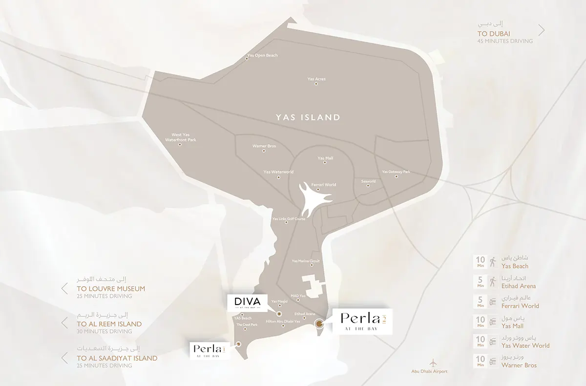 Perla 2 is located on Yas Island in Abu Dhabi, offering residents an inspiring lifestyle at a prime address. The tower's superb downtown location also offers boundless inspiration and a wide range of recreational opportunities for residents and guests alike.