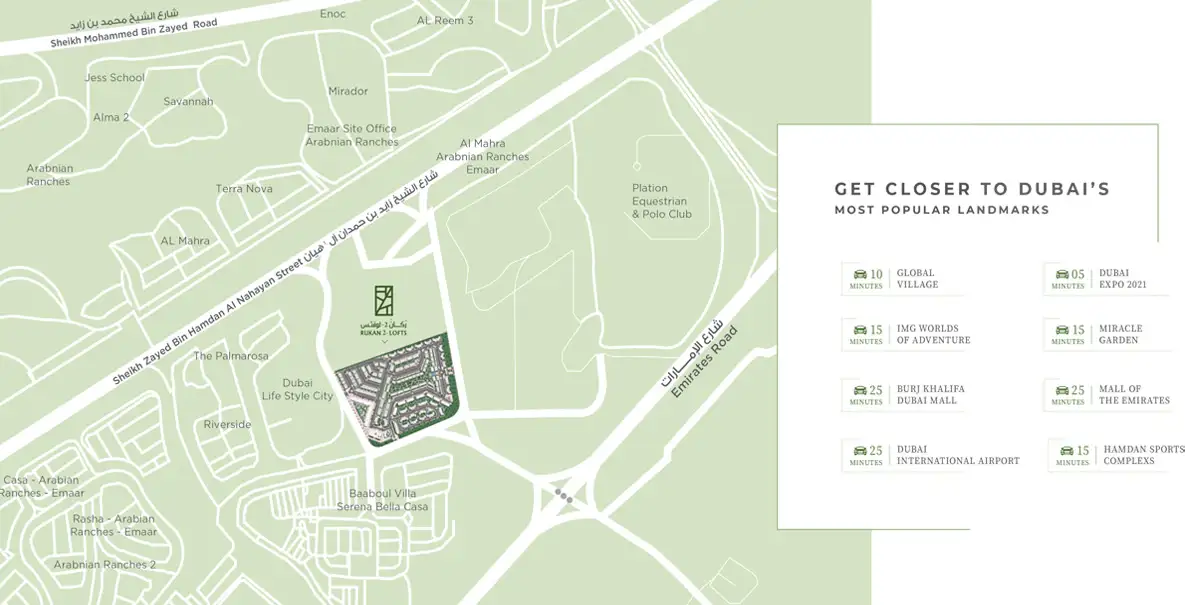 The location of Rukan Lofts Phase 2 in Dubai Land is something that most residents will love. With easy access to key attractions and proximity to some major road networks, you'll be able to get around easily.