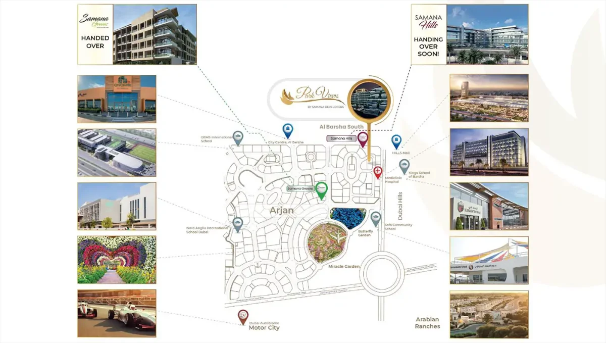 Samana Park Views is located in the prestigious Arjan neighborhood of Dubailand. The project offers a central location where everything is easily accessible. For your convenience, the project is flanked by major road networks, providing easy access to the rest of the city. This is a well-known area of Dubai that offers a high quality lifestyle, complemented by all recreational opportunities.