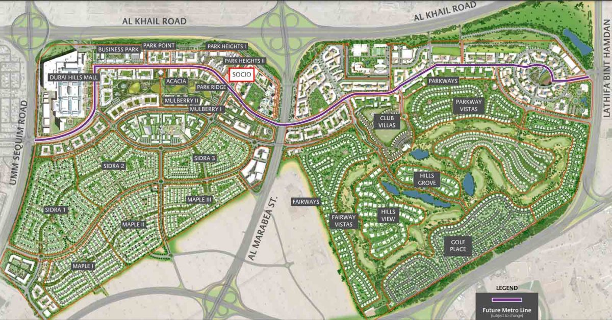 Socio at Dubai Hills Estate is a project by Emaar Properties offering luxury 1 and 2 bedroom apartments. The first-class location of the complex in Dubai Hills Estate. Residents will be able to enjoy the charm of this enclosed city while being close to the vibrant Dubai Hills Mall. Featuring retail and F&B outlets, family entertainment, a cinema and hypermarket, this mall is a shopping paradise and a destination for family fun and entertainment.