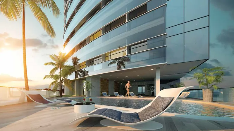 The V Tower by Tiger Properties offers furnished studios, 1, 2 and 3 bedroom apartments and duplexes at Dubailand Residence in Wadi Al Safa 5, Dubai. This complex is a new luxury adventure in Dubai with its unprecedented curved design that looks very impressive and modern.