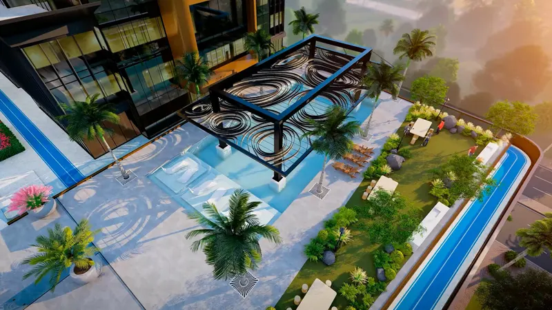 Rising against the dynamic skyline of Dubai, this architectural masterpiece is a true work of art, setting new standards for modern living and aesthetics. A world of convenience and comfort awaits residents. Whether you're a fitness enthusiast or looking to relax, there's something for everyone, from a fully equipped gym to a children's playground and family sports courts.