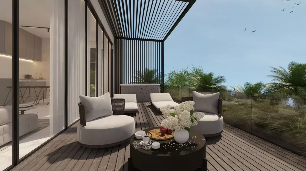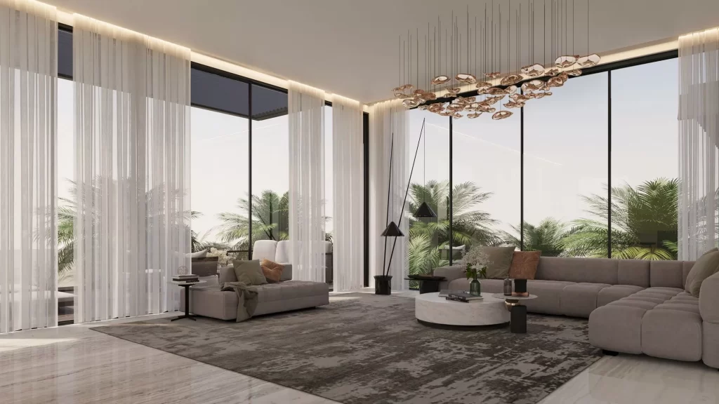 Во всех резиденциях будет гостиная, терраса и задний двор. На отдельных виллах есть собственный кинотеатр, бар, тренажерный зал и семейный лаундж.